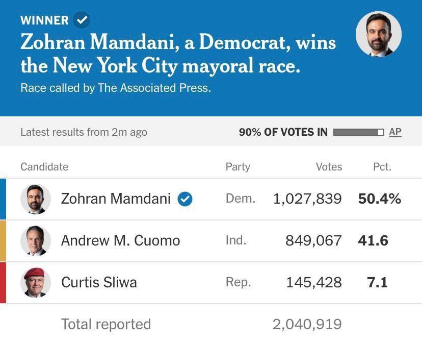 زهران ممدانی در انتخابات شهرداری نیویورک تونست رقیبشو شکست بده و به عنوان اولین شهردار مسلمان (شیعه) این شهر انتخاب…