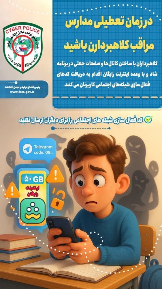 با تعطیلی مدارس، کلاهبرداران دستبهکار شدهاند، پیامهایی با وعدهی ۵۰ گیگ اینترنت رایگان nv شاد ارسال میکنند.